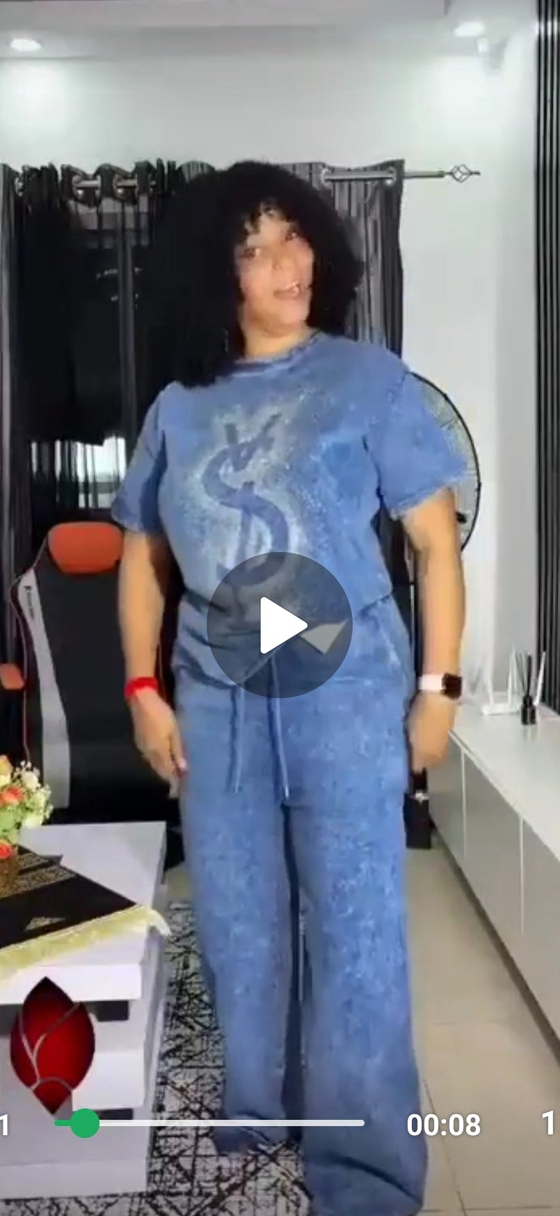 1.12.26 Pants set Y denim look w rhinestone letters