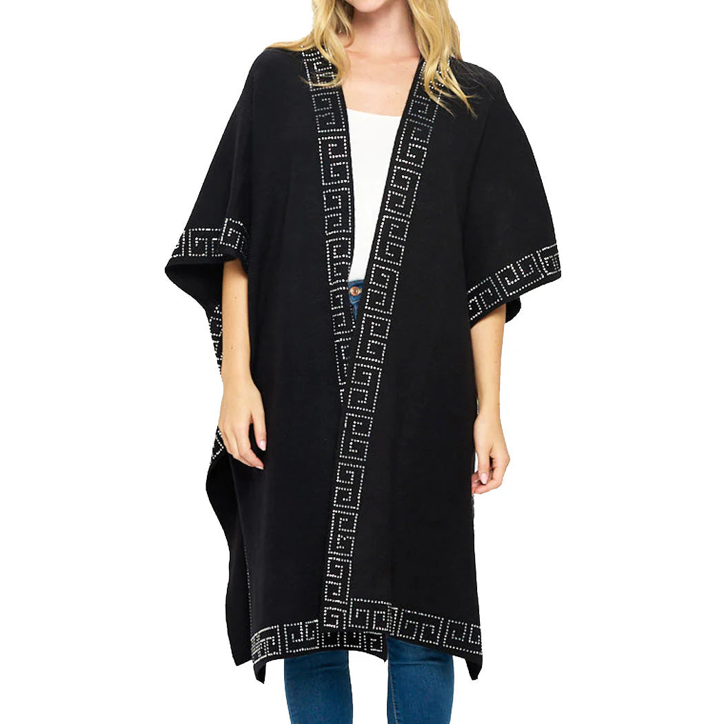 This elegant shawl combines a luxurious blend of viscose, nylon, and polyester for a soft, comfortable feel and durable wear. Detailed with sparkling crystal rhinestone accents in a distinctive bling maze pattern, it adds refined sparkle to any outfit. One size fits all, making it a versatile accessory for sophisticated evenings or special occasions.