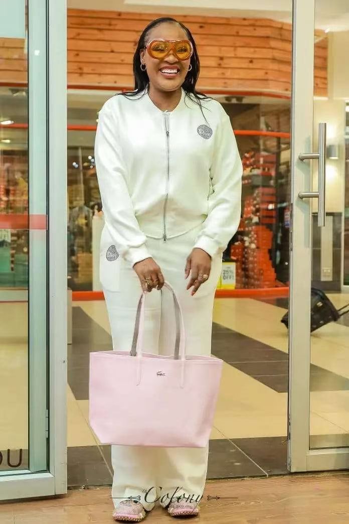 This 3-piece set features a sleek white jogger paired with a stylish crop top, both adorned with a tasteful bling designer logo for a subtle touch of luxury. Crafted for comfort and style, the ensemble offers a modern, coordinated look perfect for casual outings or relaxed settings. The jogger’s tailored fit complements the crop top’s contemporary cut, making this set a versatile addition to your wardrobe.