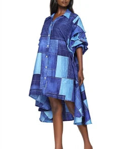 Expertly designed with rhinestone buttons, the perfect statement piece for any occasion. Featuring a high low hem, this dress is both chic and versatile, fitting up to size 2x. Make a bold fashion statement with this stunning dress.