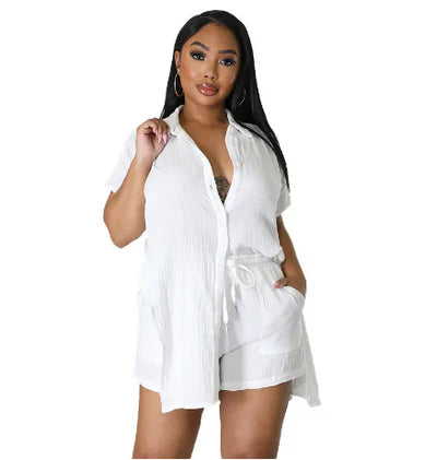 Experience effortless comfort with this breathable 2-piece button-up set in size 2X. Designed with lightweight, airy fabric, it ensures optimal ventilation for all-day wear. The classic button-up style adds a polished touch, making it perfect for both casual outings and relaxed office days. Tailored for a flattering fit, this set combines functionality with timeless style.