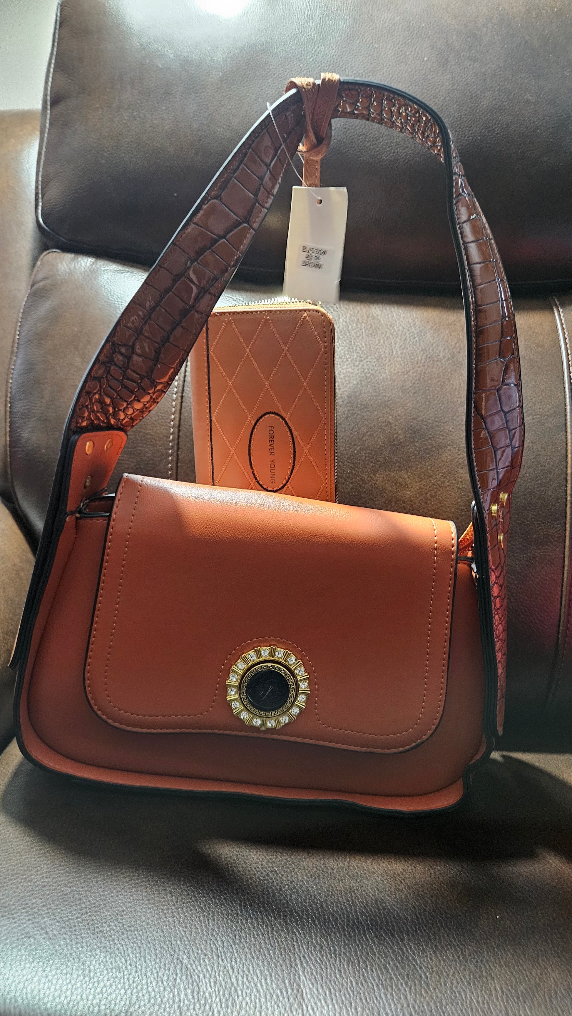 9.4.25 Purse shoulder bag w croc trim black medallion mid